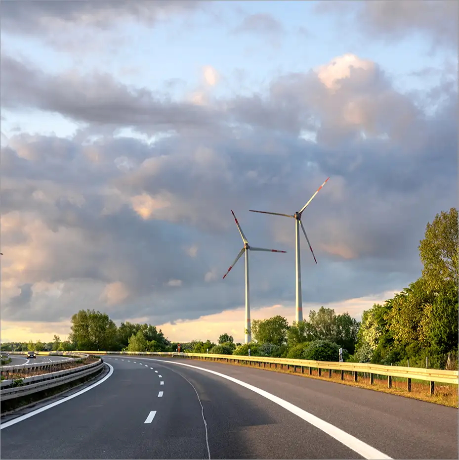 Kleine und mittlere Windkraftanlagen an Autobahnen gewinnen an Bedeutung, da Randflächen oft ideale Windbedingungen bieten.
